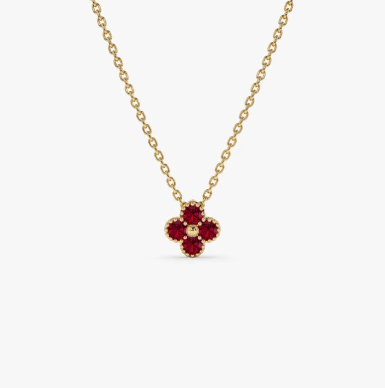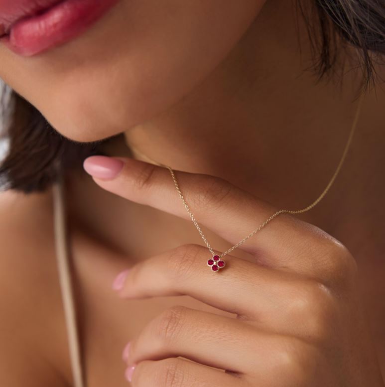 Un medalion cu rubine naturale, cu nuanțe vibrante de rosu intens, devine centrul acestui medalion sofisticat. Montura clasică, realizată din aur 14K sau 18K, pune în valoare transparența și lumina unică a pietrei.